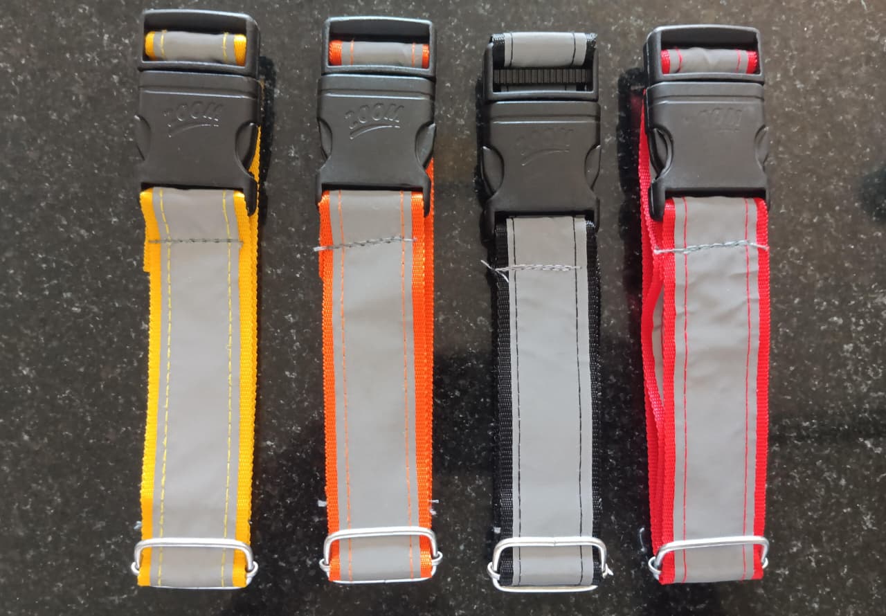 Adjustable Reflective Dog CollarSafety Meets ComfortOur adjustable dog collar combines high-visibility reflective stitching with durable, lightweight nylon construction. Designed for night safety and everyday comfort, this collar is perfect for walks, training, and outdoor adventures. Key Features:1. Reflective Stitching: High-visibility reflective stripes for increased safety at night. 2. Adjustable Fit: Suitable for small, medium, and large dogs. 3. Quick-Release Buckle: Easy on and off for hassle-free wear. 4. Sturdy D-Ring: Secure leash attachment for worry-free walks. 5. Soft Edges: Gentle on your dog's neck for maximum comfort. Available Colours: 1. Red with white reflective stripes 2. Orange with white reflective stripes 3. Yellow with white reflective stripes 4. Black with white reflective stripes 5. Pink with white reflective stripes Durable & Comfortable: Made from strong yet lightweight nylon, our collar is built to last while ensuring your dog's comfort. Ideal for everyday use and outdoor activities.