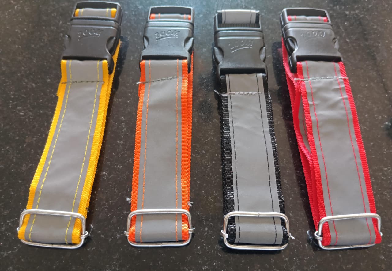 Adjustable Reflective Dog CollarSafety Meets ComfortOur adjustable dog collar combines high-visibility reflective stitching with durable, lightweight nylon construction. Designed for night safety and everyday comfort, this collar is perfect for walks, training, and outdoor adventures. Key Features:1. Reflective Stitching: High-visibility reflective stripes for increased safety at night. 2. Adjustable Fit: Suitable for small, medium, and large dogs. 3. Quick-Release Buckle: Easy on and off for hassle-free wear. 4. Sturdy D-Ring: Secure leash attachment for worry-free walks. 5. Soft Edges: Gentle on your dog's neck for maximum comfort. Available Colours: 1. Red with white reflective stripes 2. Orange with white reflective stripes 3. Yellow with white reflective stripes 4. Black with white reflective stripes 5. Pink with white reflective stripes Durable & Comfortable: Made from strong yet lightweight nylon, our collar is built to last while ensuring your dog's comfort. Ideal for everyday use and outdoor activities.